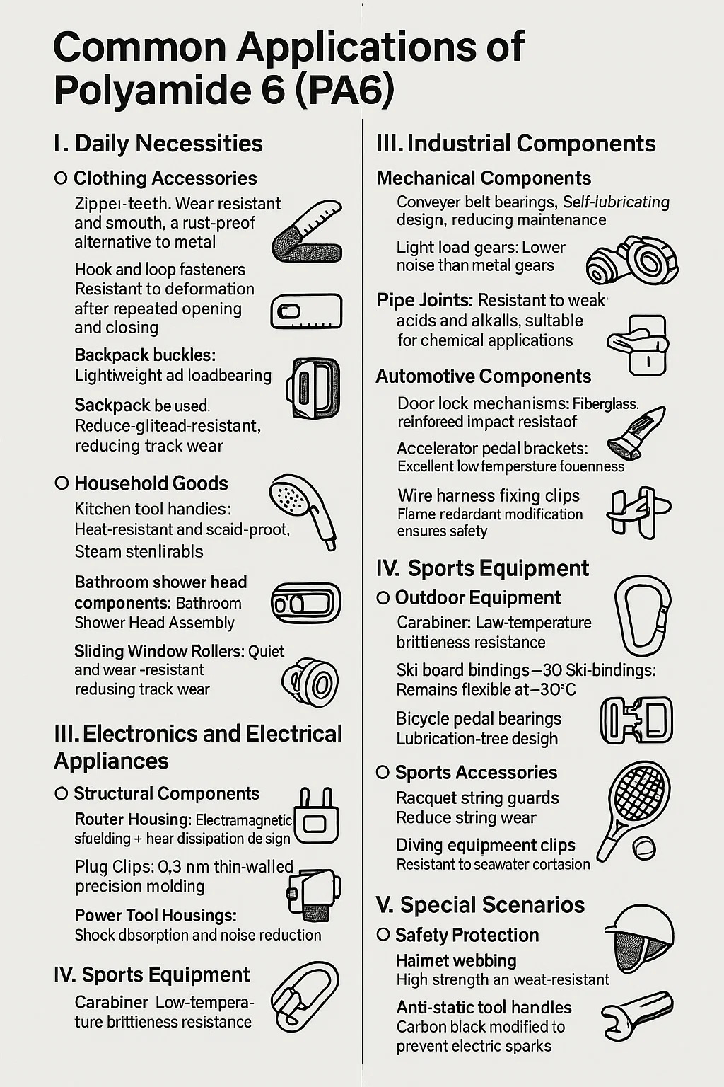 در زیر مقدمه ای بر کاربردهای رایج آن آورده شده است پلی آمید 6 (PA6):